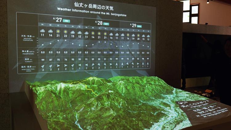 本プロジェクトでは、登山者の安全と利便性を高めるため、インタラクティブなデジタルサイネージやプロジェクションマッピングなど、複数の最新システムを一体的に導入し、登山・気象情報のリアルタイム情報の発信や、山岳模型を活用した分かりやすい情報提示を実現しました。
